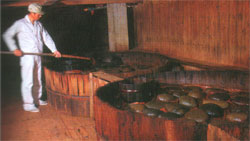 vermischt und zur Gärung in 3 Meter hohe Zedernholzfässer gefüllt. Dieser